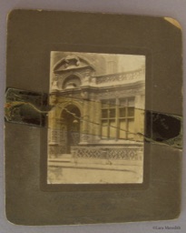 The photograph and mount had been torn in two and "repaired with pressure sensitive tape"