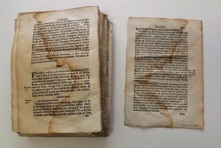 A burst pipe had resulted in waterstaining of these unbound textblocks