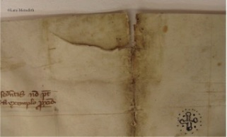 Repairs were made to the parchment leaves where the bifolium had torn and old repairs had become inflexible