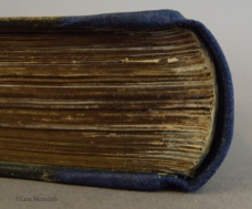 Surface cleaned, extensive paper repair, resewn and rebacked in blue cloth