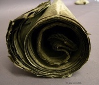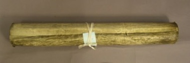 A dirty torn and tightly rolled manuscript